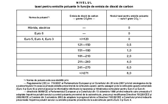 B= taxa pentru emisiile poluante, exprimata in euro/l gram CO2, prevazuta in coloana 3 din anexa nr. 1;