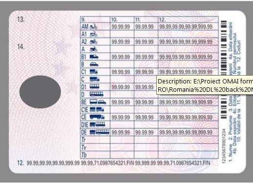 La fel ca pana acum, permisul va fi confectionat in sistem duplex (fata I si fata II verso) si va avea un cod de bare.
