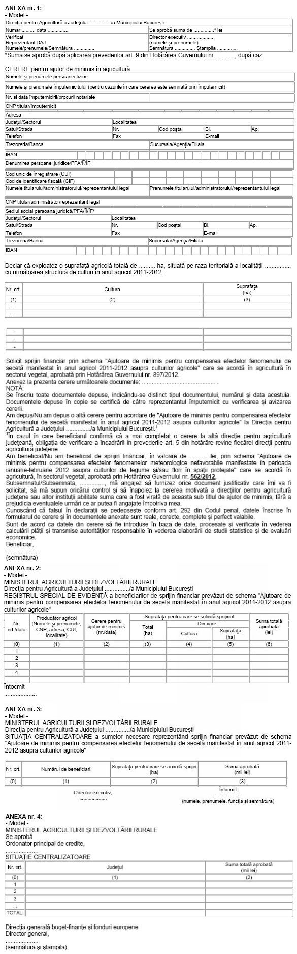 Nota AvocatNet.ro: Anexele HG nr. 897/2012 sunt disponibile in fisierul atasat, asa cum au fost ele publicate pe site-ul Ministerului Agriculturii (MADR).