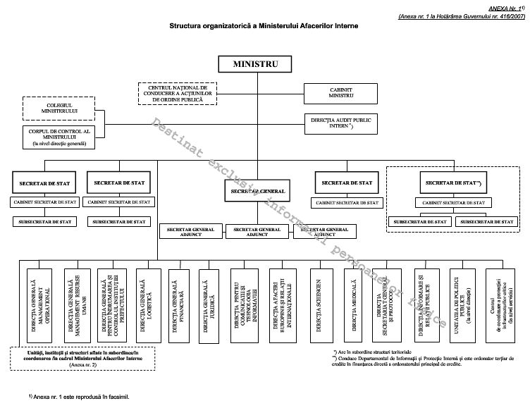 (4) Coordonarea de catre ministru, secretarii de stat si secretarul general a structurilor din aparatul central si a institutiilor si structurilor aflate in subordinea/in coordonarea/in cadrul ministerului se stabileste prin ordin al ministrului afacerilor interne