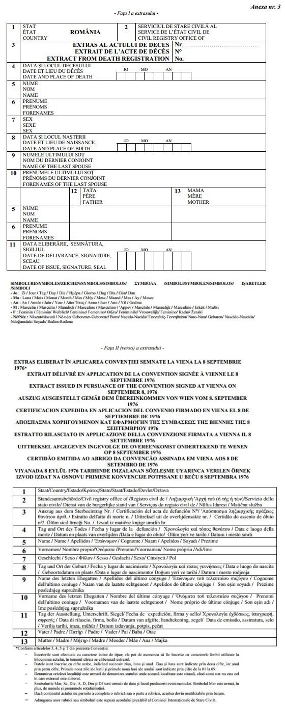 Modelele extraselor multilingve ale actelor de stare civila (nastere, casatorie, deces) ce vor fi eliberate de autoritatile romane pot fi consultate in fisier atasat.