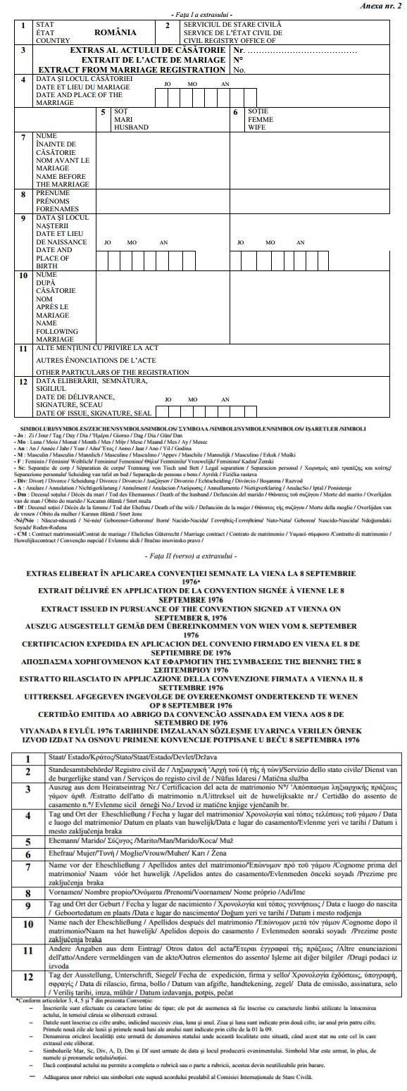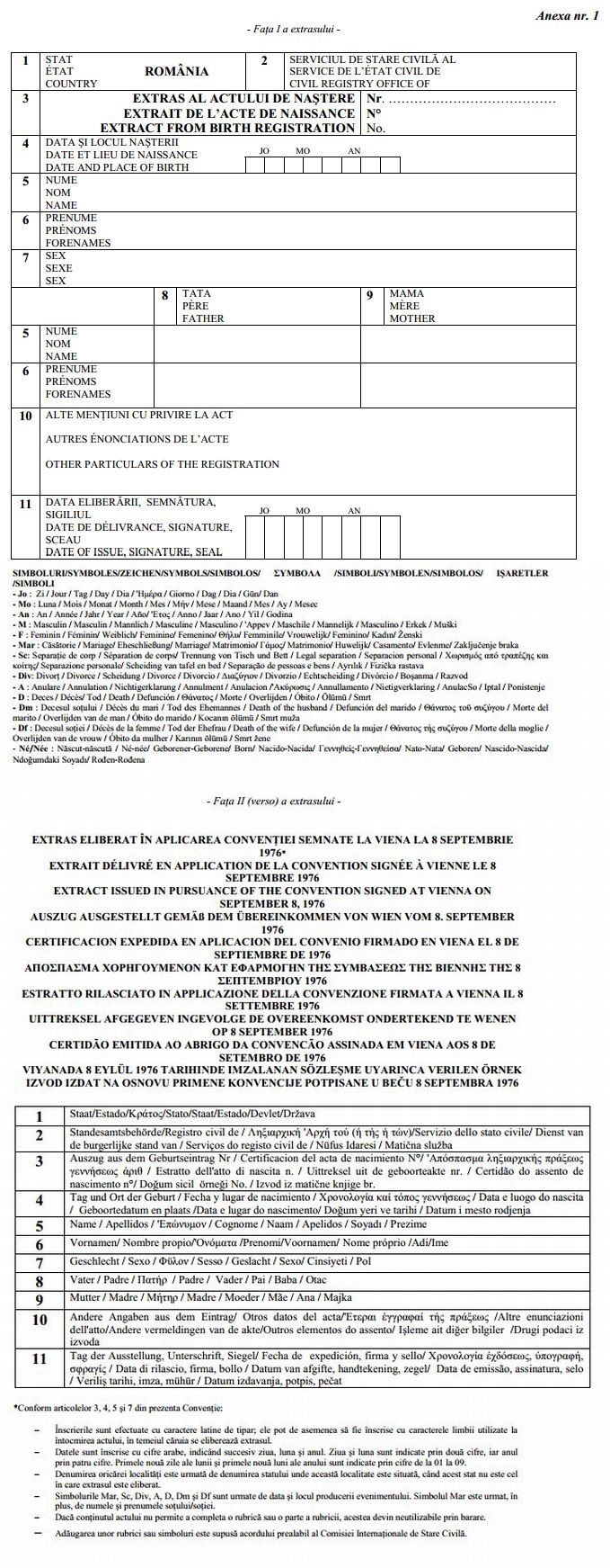 Conventia nr.16 a Comisiei internationale Stare Civila referitoare la eliberarea Extraselor multilingve ale actelor de stare civila a fost semnata la Viena la 8 Septembrie 1976, in scopul instituirii unui cadru Reglementar comun privind eliberarea unor extrase de pe actele de stare civila destinate utilizarii in strainatate si eliminarii conditiei de legalizare a actelor de stare civila. (puteti citi AICI textul Conventiei, n.red.)