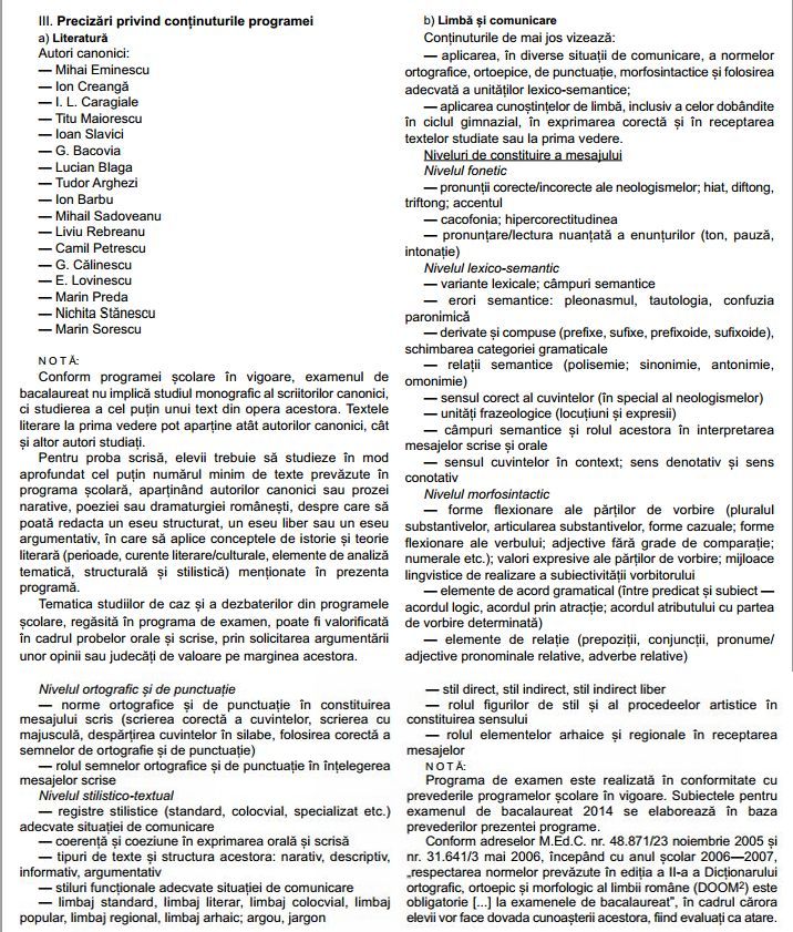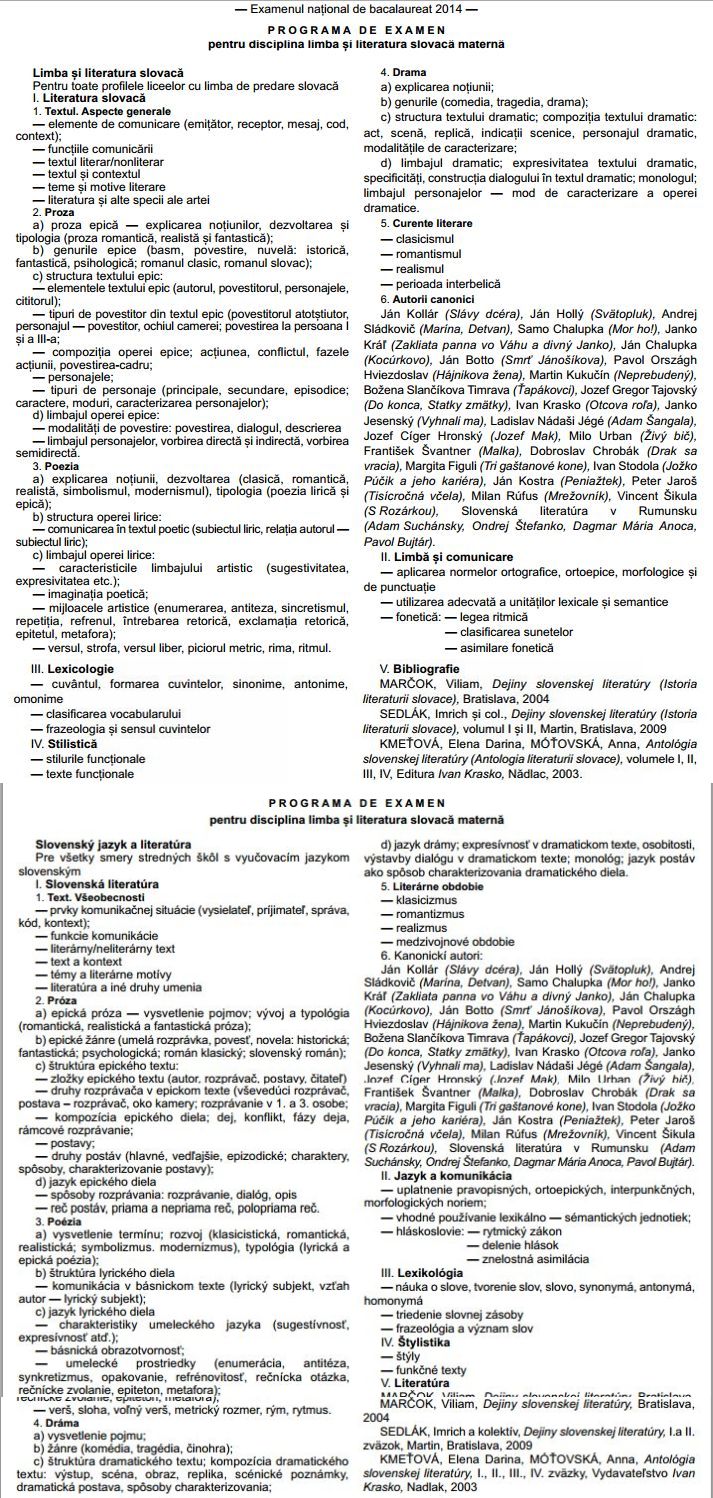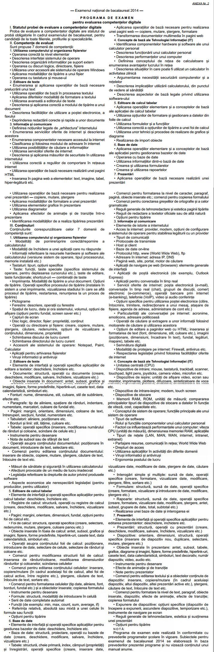 (2) Se aproba programele de bacalaureat pentru evaluarea competentelor digitale, pentru limba si literatura romana si pentru limba si literatura slovaca materna, valabile in sesiunile examenului de bacalaureat national din anul 2014, prevazute in anexa nr. 2, care face parte integranta din prezentul ordin