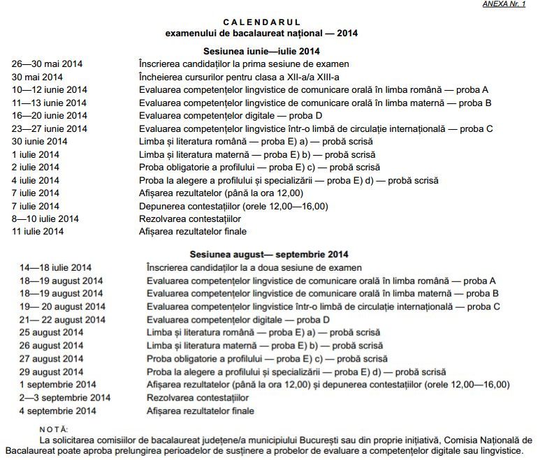 Art. 1. - Se aproba Calendarul examenului de bacalaureat national - 2014, prevazut in anexa nr. 1, care face parte integranta din prezentul ordin.