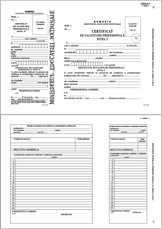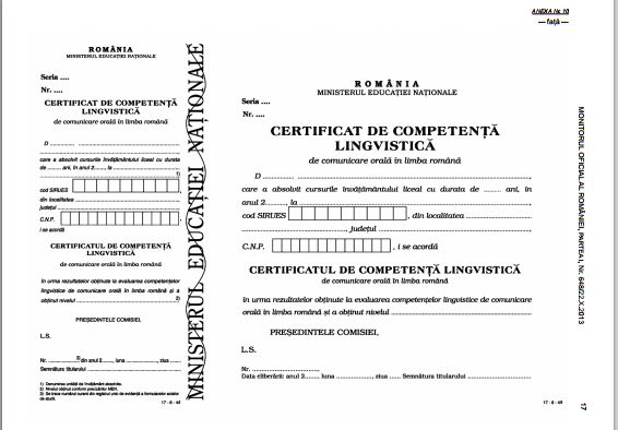 - Certificatul de competenta lingvistica de comunicare orala in limba romana;