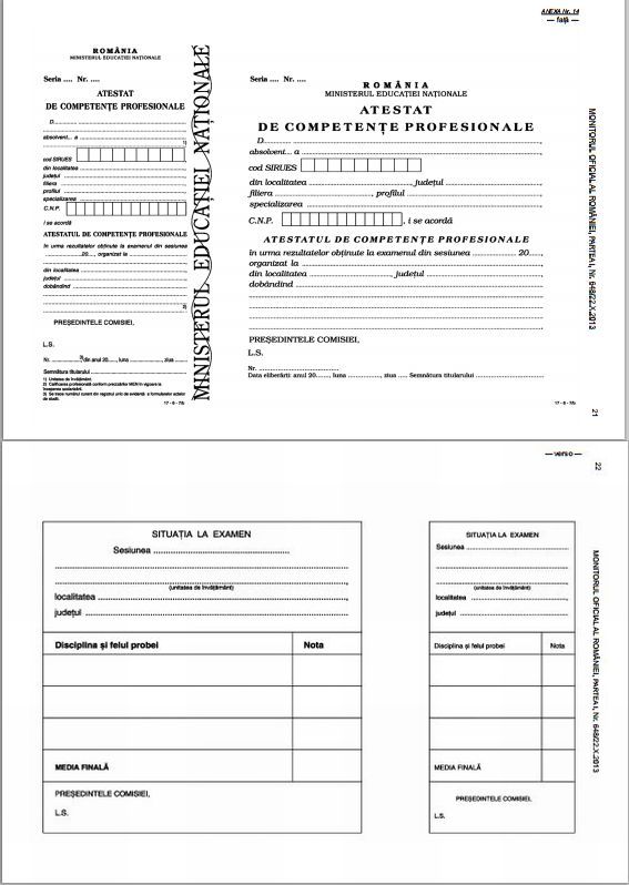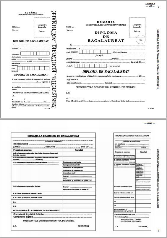 Conform HG 749/2013, actele de studii care se elibereaza in sistemul national de invatamant preuniversitar sunt urmatoarele: