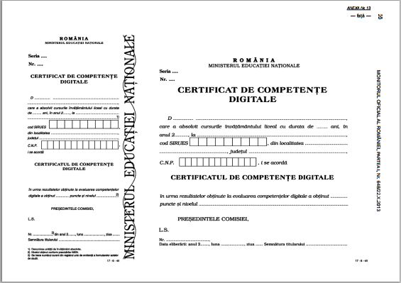 - Certificatul de competenta lingvistica intr-o limba de circulatie internationala;