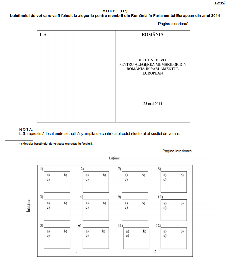 Legislatie HG nr. 108/2014 - aprobarea modelului buletinului de vot care va fi folosit la ...