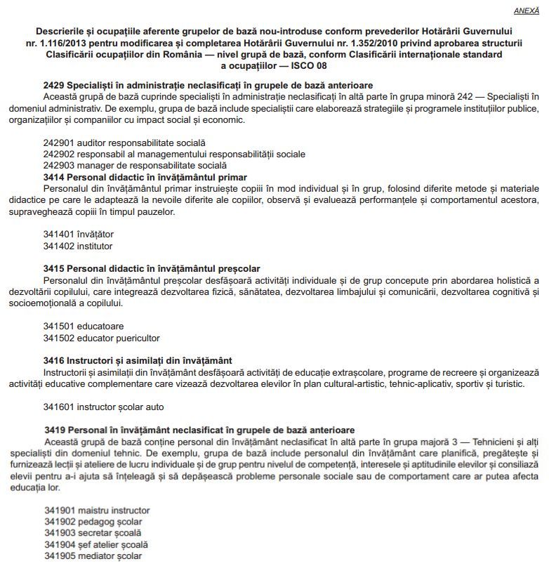 Ordinul comun al ministrului muncii, familiei, protectiei sociale si persoanelor varstnice si al presedintelui Institutului National de Statistica nr. 433/138/2014 pentru completarea Clasificarii ocupatiilor din Romania - nivel de ocupatie (sase caractere), aprobata prin Ordinul ministrului muncii, familiei si protectiei sociale si al presedintelui Institutului National de Statistica nr. 1832/856/2011 a fost publicat in Monitorul Oficial, Partea I, nr. 245 din 7 aprilie 2014.