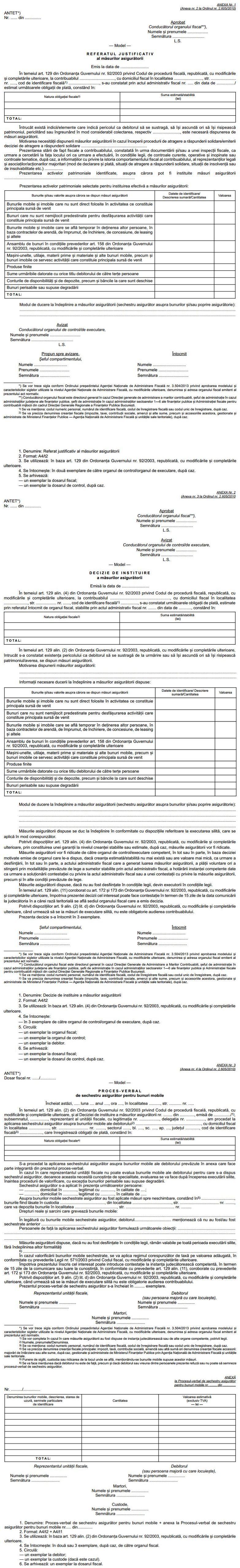 6.7. «Referatul justificativ de ridicare a masurilor asiguratorii» se intocmeste in doua exemplare de catre organul de control/organul de executare, dupa caz, si sta la baza emiterii «Deciziei de ridicare a masurilor asiguratorii». Acesta va fi propus spre avizare de seful de serviciu de specialitate, va fi avizat de coordonatorul acestuia, dupa caz, si aprobat de catre conducatorul organului fiscal prevazut la subpct. 5.1.5.”