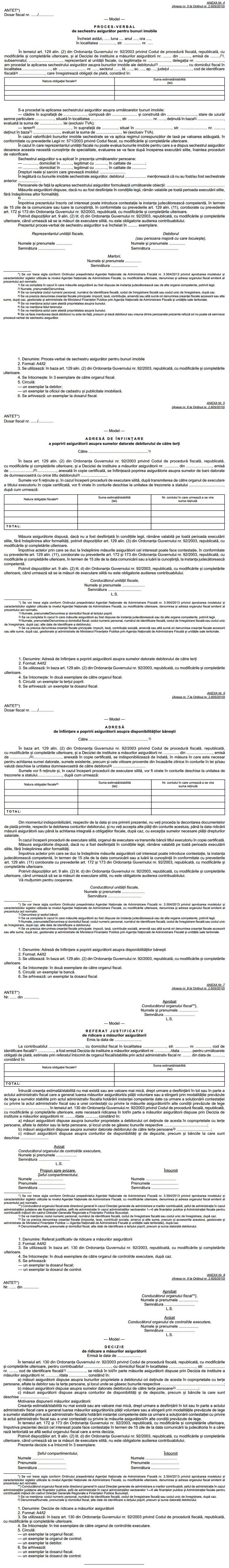 10. La anexa nr. 1 punctul 6, dupa subpunctul 6.7 seintroduce un nou subpunct, subpunctul 6.8, cu urmatorul cuprins: „6.8. «Decizia de ridicare a masurilor asiguratorii» se intocmeste in 3 exemplare de catre organul de control/organul de executare, dupa caz, va fi propusa spre avizare de seful de serviciu de specialitate, va fi avizata de coordonatorul acestuia, dupa caz, si aprobata de catre conducatorul organului fiscal prevazut la subpct. 5.1.5.”