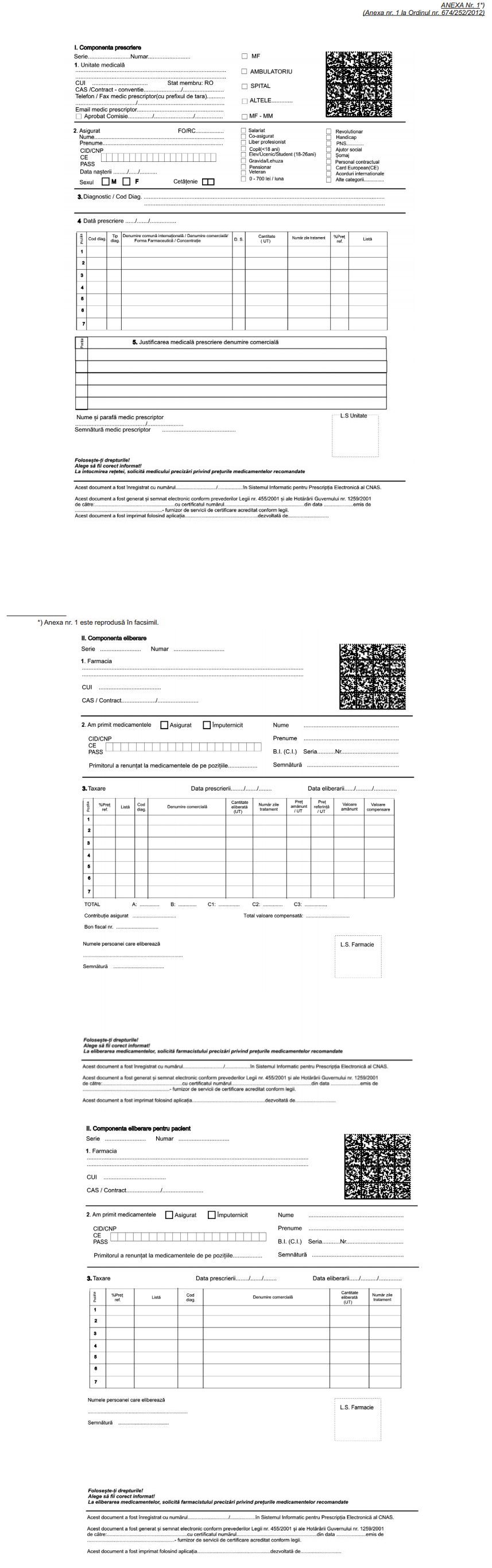 l) «Acest document a fost inregistrat cu numarul............... in Sistemul informatic pentru prescriptia electronica al CNAS» - se completeaza numarul si data de inregistrare a prescriptiei medicale electronice - componenta eliberare. Numarul de inregistrare se atribuie automat prin Sistemul informatic pentru prescriptia electronica al Casei Nationale de Asigurari de Sanatate;