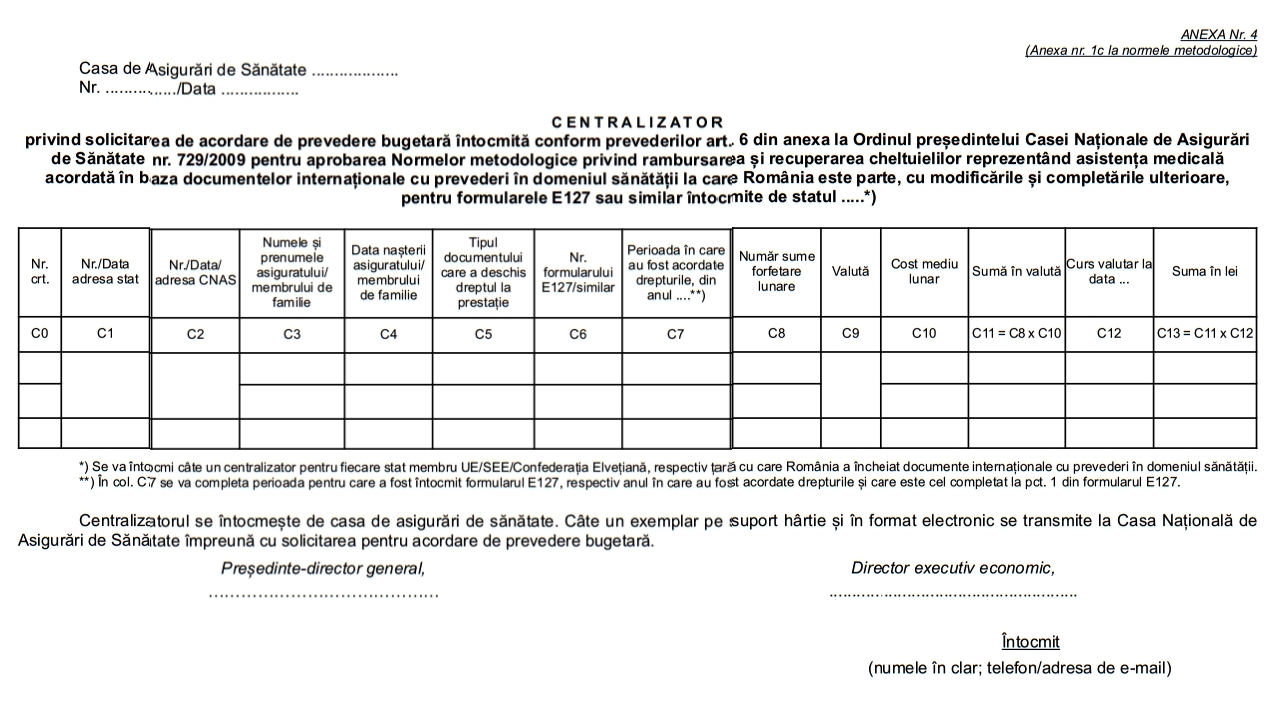 (4) In vederea rambursarii contravalorii asistentei medicale devenite necesara, asiguratul, un membru al familiei (parinte, sot/sotie, fiu/fiica) sau o persoana imputernicita in acest sens de acesta, denumit in continuare solicitant, va depune la casa de asigurari de sanatate care are in evidenta persoana asigurata respectiva o cerere in formatul prevazut in anexa nr.3a, insotita de documente justificative. Solicitantul are dreptul de a opta pentru nivelul la care se va realiza rambursarea contravalorii asistentei medicale acordate, drept exprimat prin cererea adresata casei de asigurari de sanatate care are in evidenta persoana asigurata, dupa cum urmeaza: