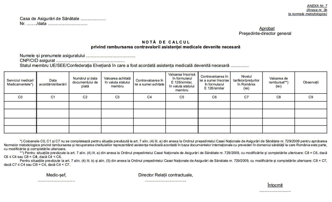 b) la nivelul tarifelor prevazute de actele normative in vigoare care reglementeaza sistemul de asigurari sociale de sanatate din Romania in vigoare la data efectuarii platii, prevazut la art. 71; casa de asigurari de sanatate instituie in prealabil procedura prin utilizarea formularului E126 sau similar in vederea determinarii serviciilor medicale devenite necesare in conformitate cu legislatia statului membru respectiv.