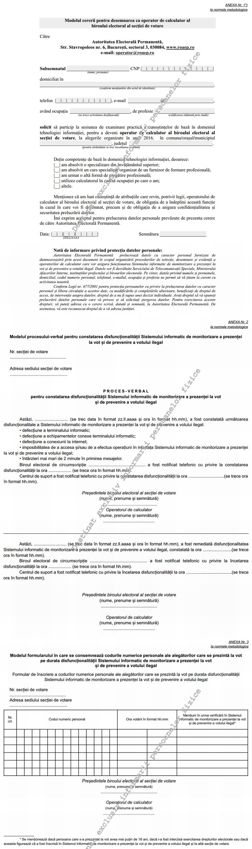 Art. 1. - Se aprobă Normele metodologice privind funcționarea Sistemului informatic de monitorizare a prezenței la vot și de prevenire a votului ilegal, selecția și desemnarea operatorilor de calculator ai birourilor electorale ale secțiilor de votare, prevăzute în anexa care face parte integrantă din prezenta hotărâre.