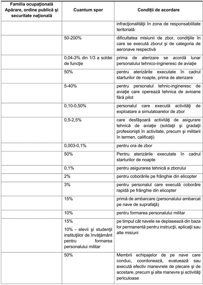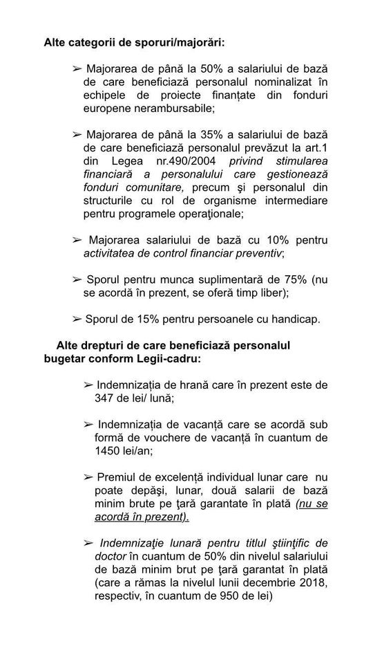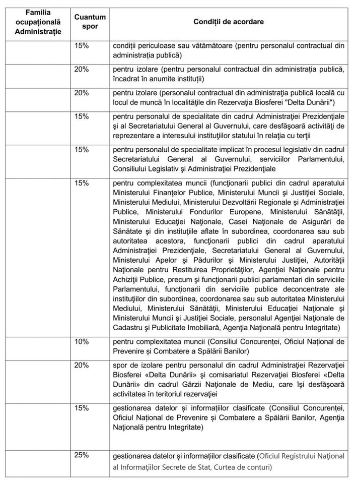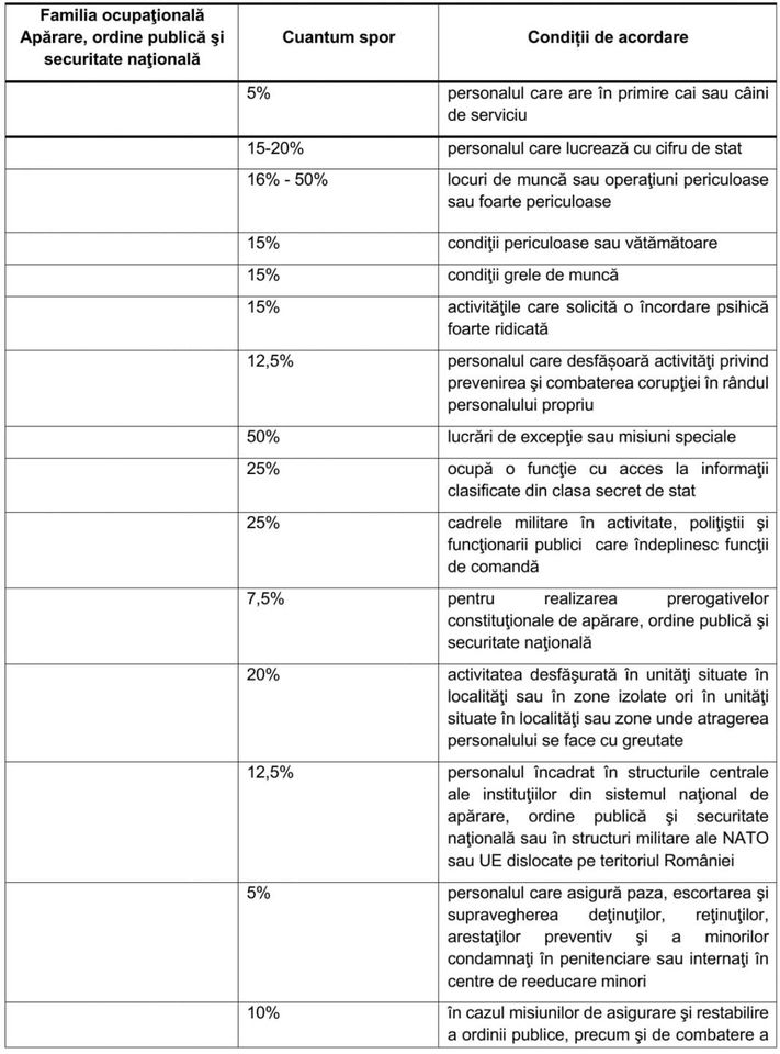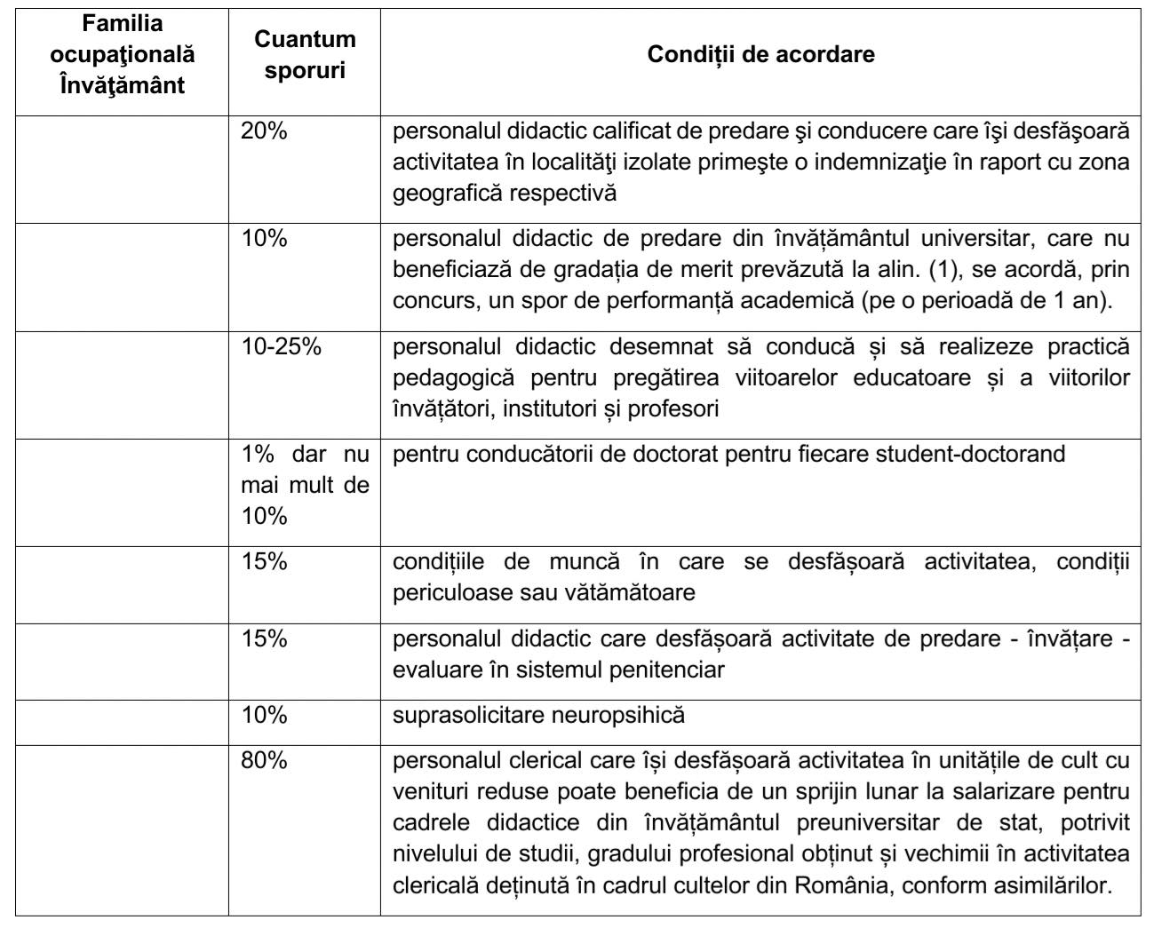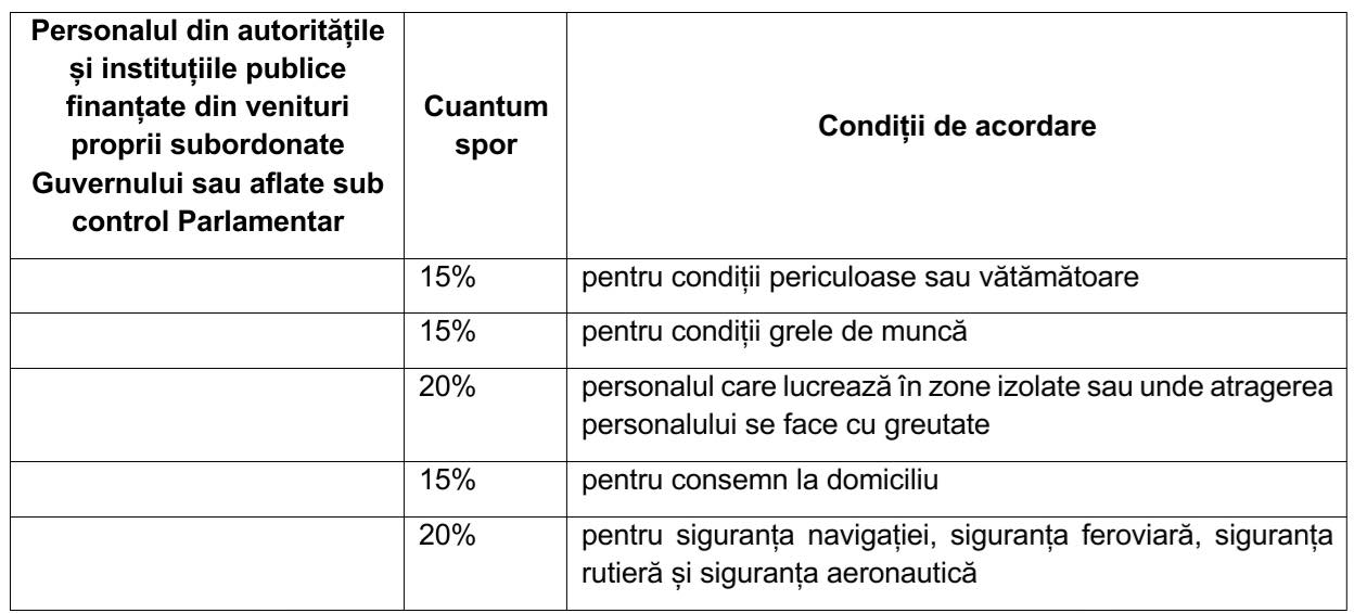Alte exemple de sporuri din sistemul bugetar, dar și cuantumurile asociate, sunt: