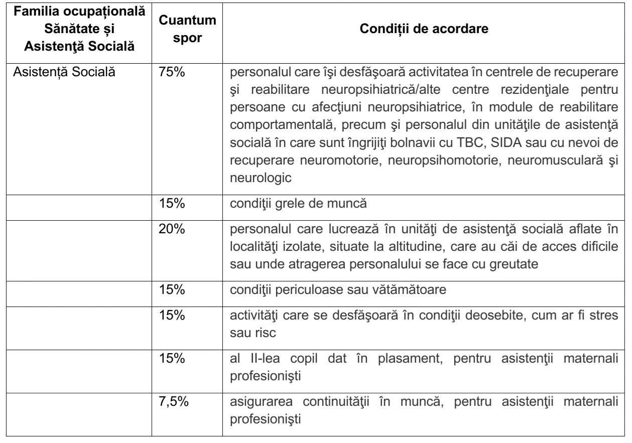 - pentru munca în condiții grele (în domeniul sănătății și asistenței sociale) - 15%;