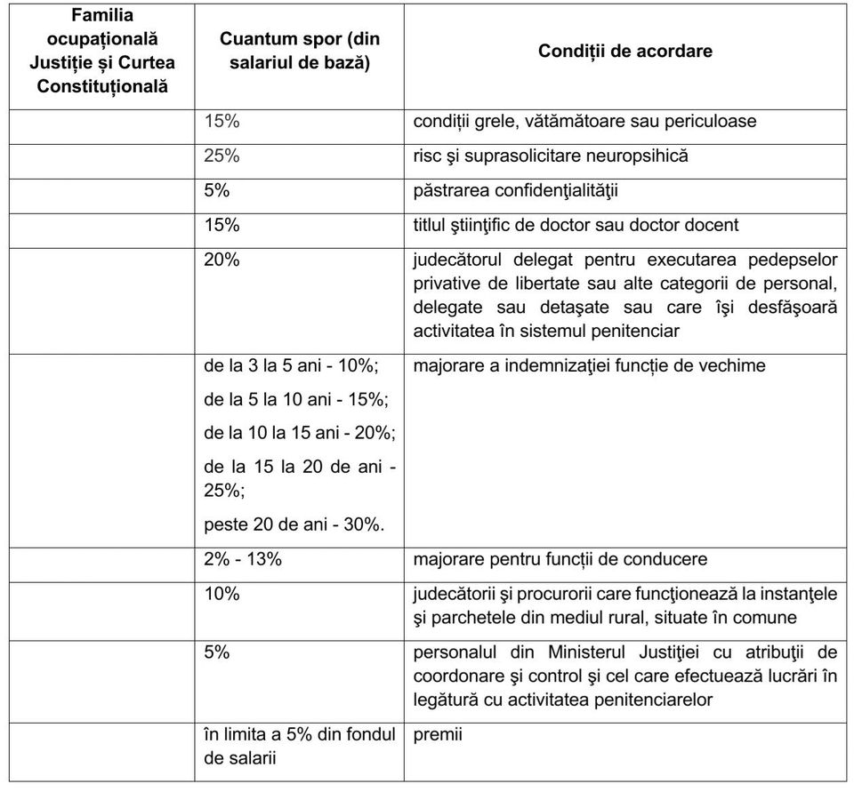 - pentru funcții de conducere - (în domeniul justiției și la Curtea Constituțională a României) - 2-13%;