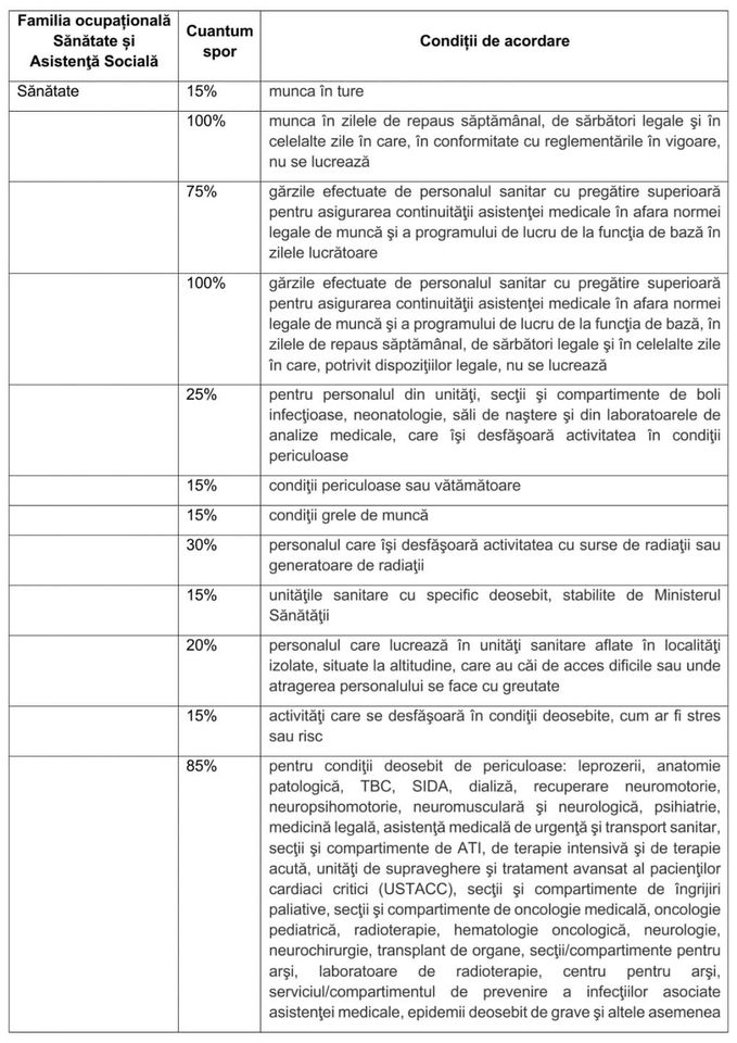 - pentru munca în unitățile sanitare cu specific deosebit, stabilite de Ministerul Sănătății - 15%;
