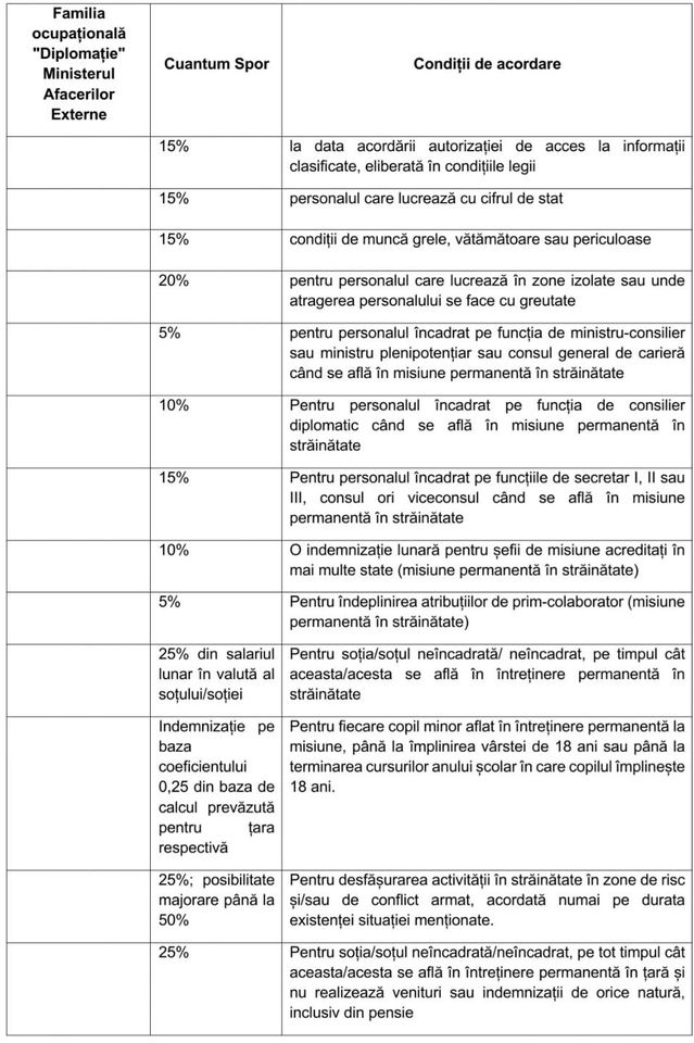 - pentru personalul care lucrează cu cifrul de stat (în diplomație - Ministerul Afacerilor Externe și în domeniul apărării, ordinii publice și securității naționale) - 15-20%;