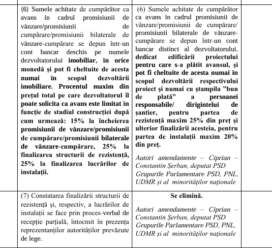 - prevederea care stabilea că statul și promitentul-cumpărător/cumpărătorul au calitatea de creditori privilegiați în cadrul procedurii de insolvență a dezvoltatorului - asta le-ar fi conferit șanse mai mari să-și recupereze banii în cazul în care dezvoltatorul ajunge să aibă probleme financiare.