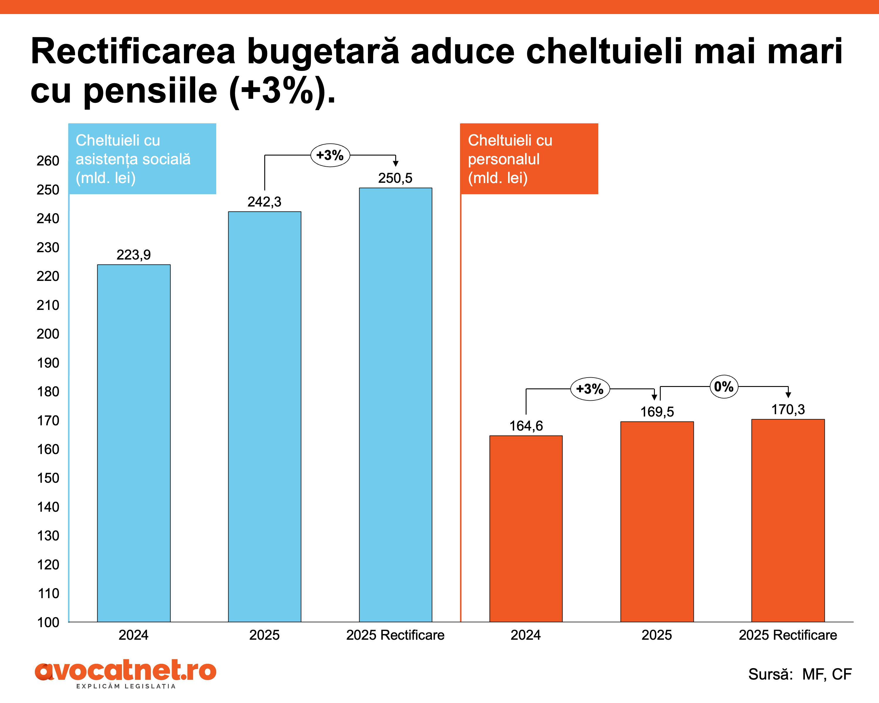 Într-adevăr, cheltuielile cu asistența socială au fost rectificate cu aproximativ 8,3 miliarde de lei (+3%). Pensia, la nivel general, nu a crescut. Începând cu luna septembrie 2024, pensiile pentru mai bine de 3,8 milioane de pensionari au crescut în urma recalculării pe baza Legii 360/2023. Efectele, la fel cum este cazul și în rândul cheltuielilor de personal au fost întârziate, aplicându-se doar în ultimele 4 luni pentru anul 2024.