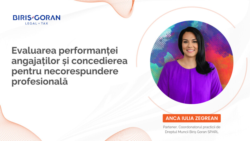 Avocatnet.ro organizează un eveniment dedicat în care Anca Iulia Zegrean, coordonatoarea practicii de Dreptul Muncii din cadrul Biriș Goran SPARL, va prezenta toate aspectele legale și practice ale evaluării performanței profesionale. Cu experiența sa în consilierea companiilor cu 50-3.000 de angajați, Anca va explica pas cu pas procedura corectă de evaluare, va identifica principalele capcane juridice și va oferi soluții practice pentru evitarea contestațiilor în instanță, cu perspective aplicabile pentru organizații de diferite dimensiuni.